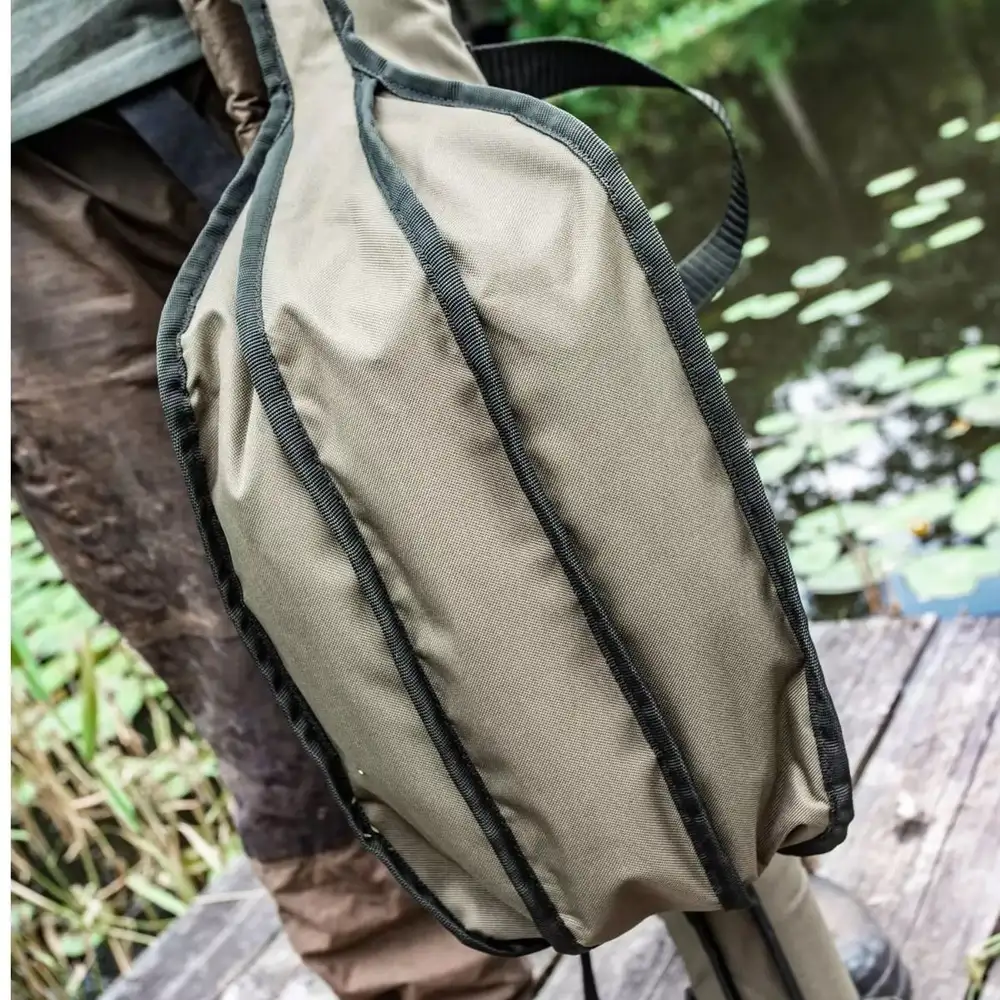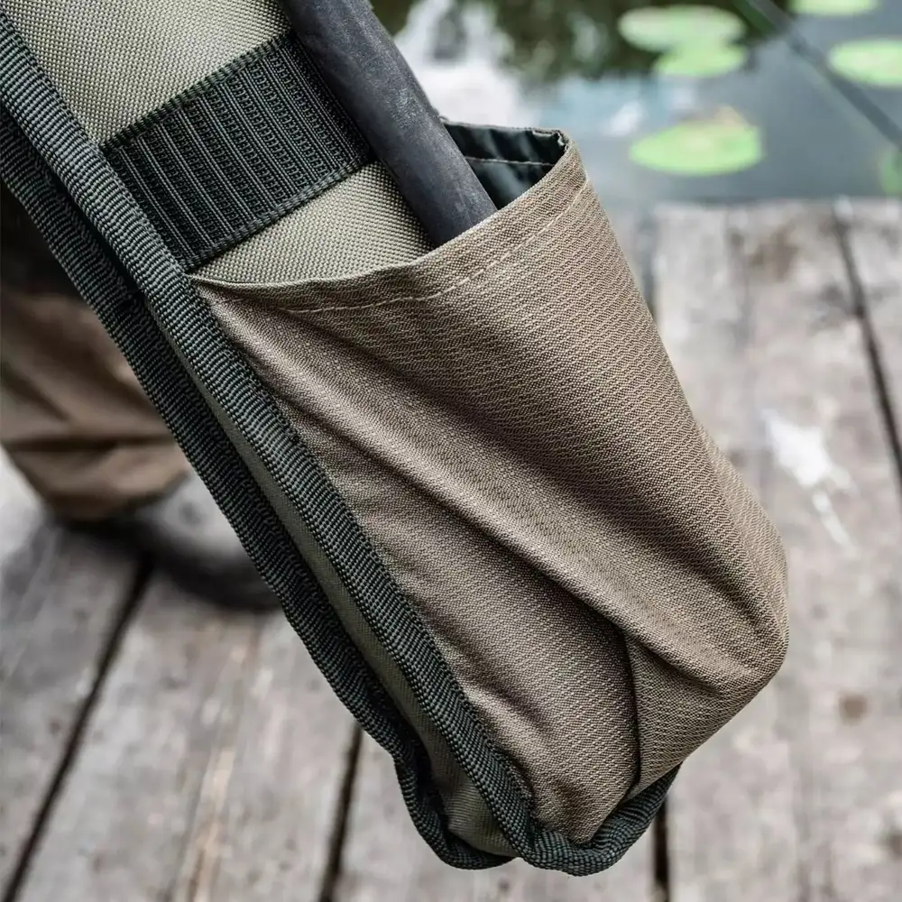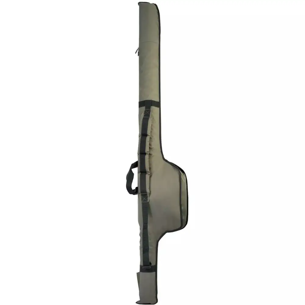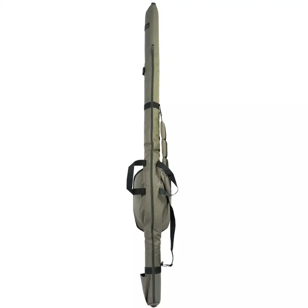 Diese einfache 3-Rutenhülse, ermöglicht die problemlose Lagerung von drei montierten Ruten. Sie enthält einen äußes Fach für zusätzliche Ruten oder Kescherstäbe. Der Tragegriff und der gepolsterte, verstellbare Schultergurt erleichtern das Tragen.